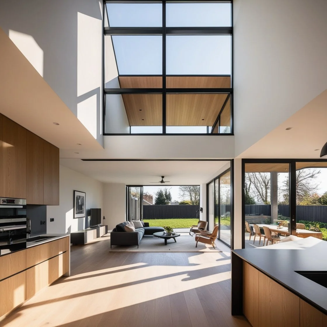 Un intérieur de maison moderne et rénové, un espace de vie ouvert avec des finitions haut de gamme.